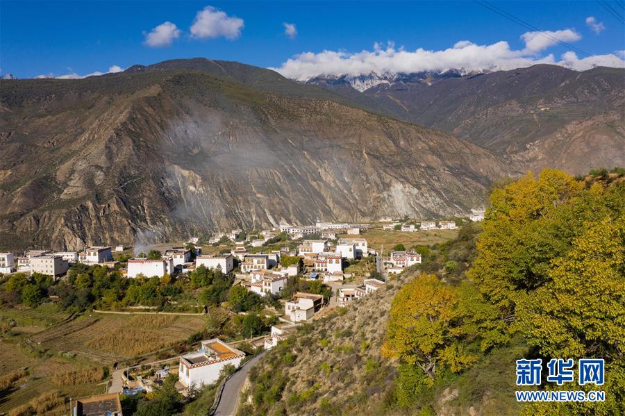 10月29日,這是秋色中的四川省鄉(xiāng)城縣的定曲河峽谷的青德鄉(xiāng)。新華社記者江宏景攝