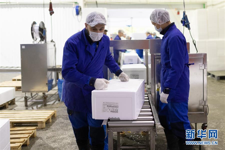 9月13日,在俄羅斯摩爾曼斯克,俄羅斯水產(chǎn)養(yǎng)殖公司工作人員搬運(yùn)已裝箱的鮭魚。 俄羅斯水產(chǎn)養(yǎng)殖公司是俄羅斯大西洋鮭和虹鱒的主要生產(chǎn)商之一。目前,該公司產(chǎn)品在俄市場(chǎng)上占比近20%,在摩爾曼斯克和卡累利阿共和國(guó)均有養(yǎng)殖場(chǎng)。俄羅斯水產(chǎn)養(yǎng)殖公司總經(jīng)理伊利亞·索斯諾夫認(rèn)為,中國(guó)鮭魚消費(fèi)市場(chǎng)潛力巨大。“中國(guó)市場(chǎng)對(duì)于我們來說非常重要,我們期待早日進(jìn)入中國(guó)市場(chǎng)……希望我們的鮭魚能贏得中國(guó)消費(fèi)者的喜愛?!?新華社記者白雪騏攝