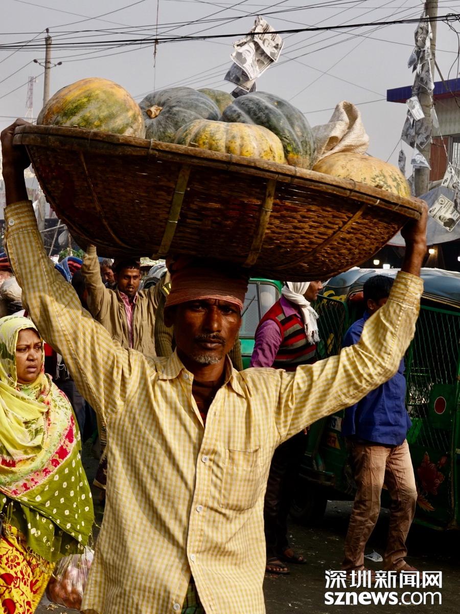 深圳新聞網(wǎng)2019年1月8日訊在孟加拉,無論城市,還是鄉(xiāng)下,人們頭頂重物的情景,確實(shí)是無處不在的。李仁奇攝