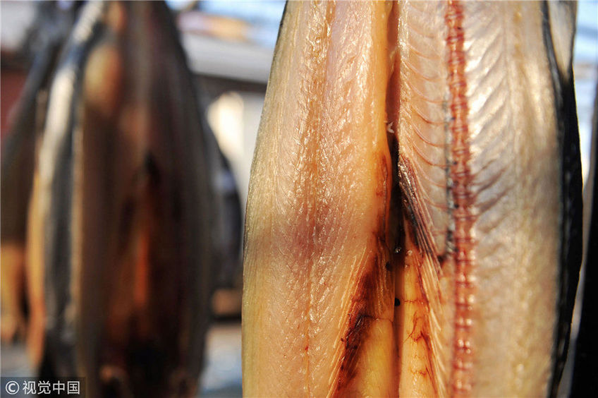 這樣風(fēng)干的魚并不比冷凍的差,但它表面干、里面嫩,吃起來口感勁道、味道咸鮮、別有風(fēng)味。