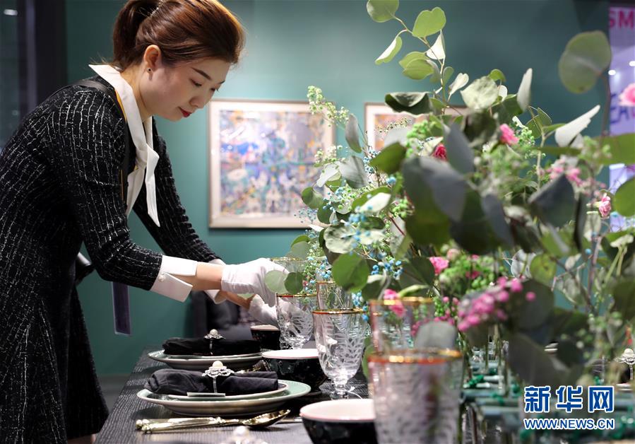 11月5日,在第二屆進博會品質(zhì)生活展區(qū),工作人員在一家丹麥家居產(chǎn)品的展臺前忙碌。新華社記者劉穎攝