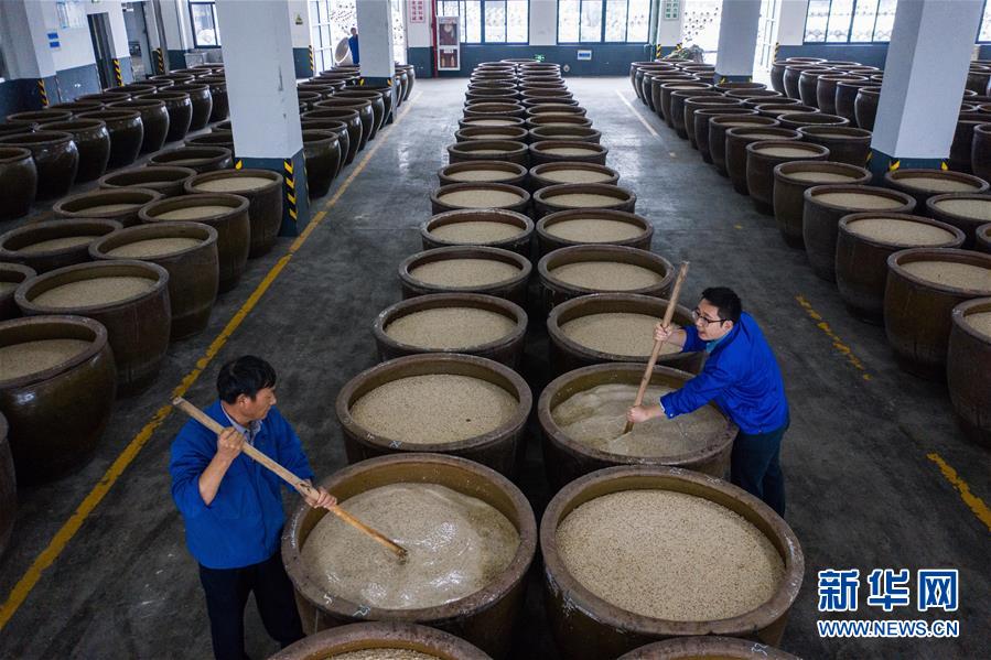 11月7日,古越龍山紹興酒股份有限公司釀酒一廠的工人碼放裝有酒母的酒壇,開啟黃酒“冬釀”序幕。這家酒廠占地面積120畝,年產(chǎn)手工黃酒2萬噸。隨著立冬節(jié)氣的到來,中國黃酒之鄉(xiāng)——浙江紹興的黃酒企業(yè)開啟傳統(tǒng)“冬釀”。依照傳統(tǒng),立冬前后是紹興黃酒開始投料發(fā)酵的日子,從立冬節(jié)氣開始到第二年立春,這段時間最適合做黃酒,人們把這段時間稱為“冬釀”。有著2500多年歷史的紹興黃酒依舊保留著古法釀造工藝:浸米、蒸飯、攤涼、落缸、保溫發(fā)酵、開耙(前發(fā)酵)、露天后發(fā)酵,到第二年春天接著開始壓榨、煎酒(殺菌)、裝酒入壇、封壇口、入庫貯藏。經(jīng)過一代又一代釀酒技師的口授心傳,傳統(tǒng)的紹興黃酒釀制工藝被完整地保存下來。1999年紹興黃酒成為國家首批原產(chǎn)地域保護(hù)產(chǎn)品,2006年紹興黃酒釀制技藝被列入國家級非物質(zhì)文化遺產(chǎn)名錄。新華社記者徐昱攝