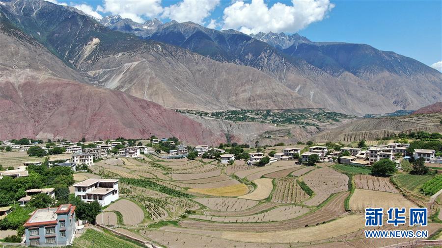 西藏昌都市芒康縣納西民族鄉(xiāng)風(fēng)貌(6月3日攝)。從陶瓷大缸里舀上一碗碗紅酒,端到來客面前雙手敬上,如同藏家農(nóng)民為客人斟上青稞酒一般,這是西藏昌都市芒康縣納西民族鄉(xiāng)百姓的待客之道。紅酒是當(dāng)?shù)匾环N“土特產(chǎn)”,家家戶戶基本都會釀制,采用傳統(tǒng)自然發(fā)酵方法。當(dāng)?shù)匕傩蔗勚萍t酒的歷史,可追溯至19世紀(jì)。芒康縣將葡萄酒作為重點(diǎn)產(chǎn)業(yè)予以扶持,已建成萬畝葡萄基地。這也帶動了當(dāng)?shù)厝罕姺N植葡萄的積極性,成為群眾重要的現(xiàn)金收入來源。新華社記者晉美多吉攝