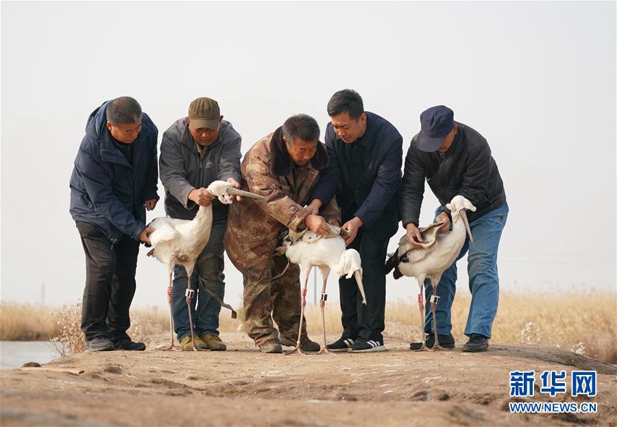 11月16日,在樂亭縣野生動物保護(hù)協(xié)會大清河鳥類救助站,工作人員放飛國家一級保護(hù)動物東方白鸛。新華社記者楊世堯攝