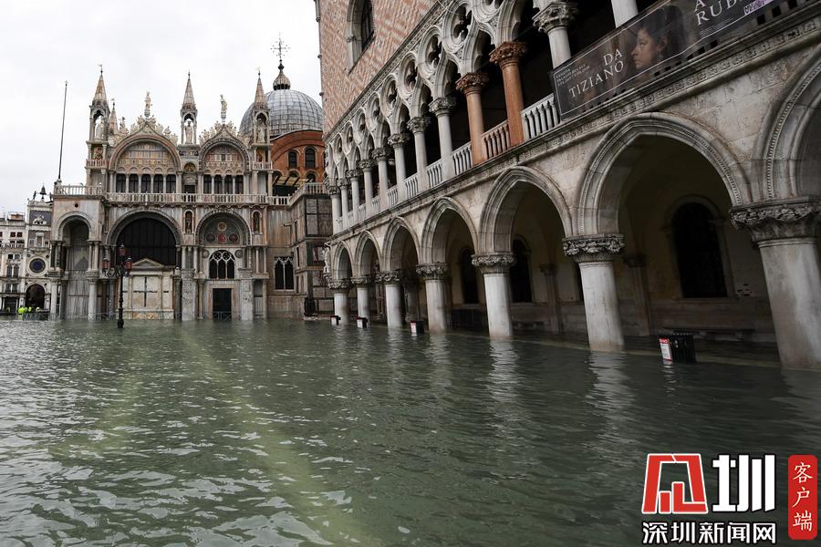 17日,威尼斯迎來(lái)一周內(nèi)的第三次罕見(jiàn)大潮,水位再度觸及1.5米。