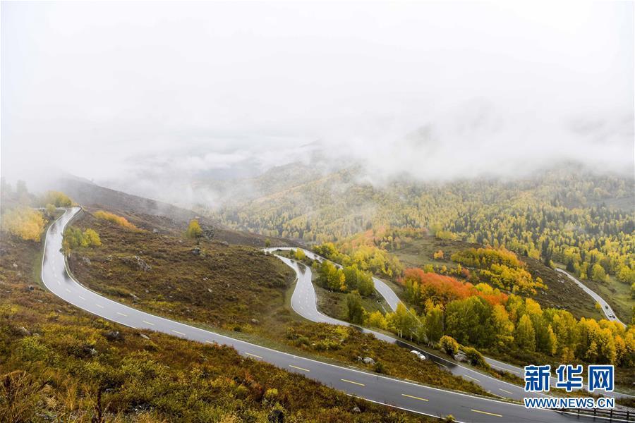 這是通往新疆喀納斯景區(qū)禾木村的道路(2017年9月23日攝)。新華社記者趙戈攝