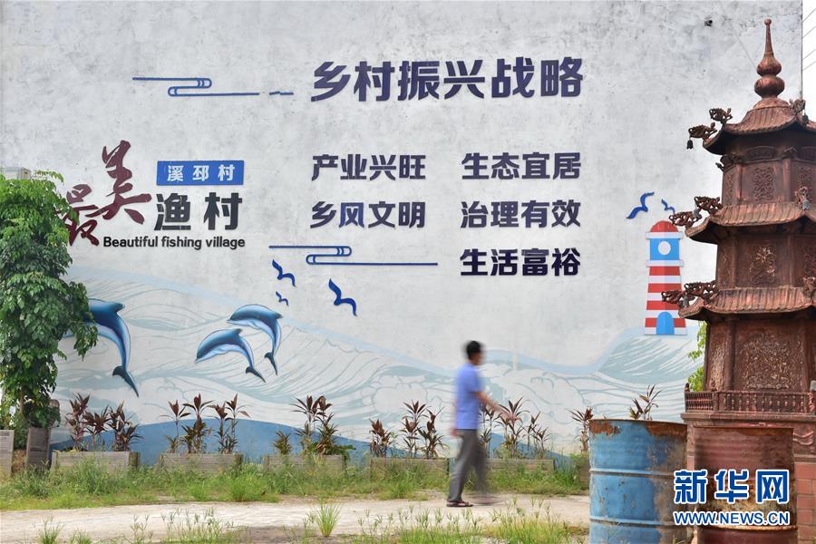 8月22日,福安市溪邳村村民從該村的宣傳欄前走過(guò)。新華社記者林善傳攝