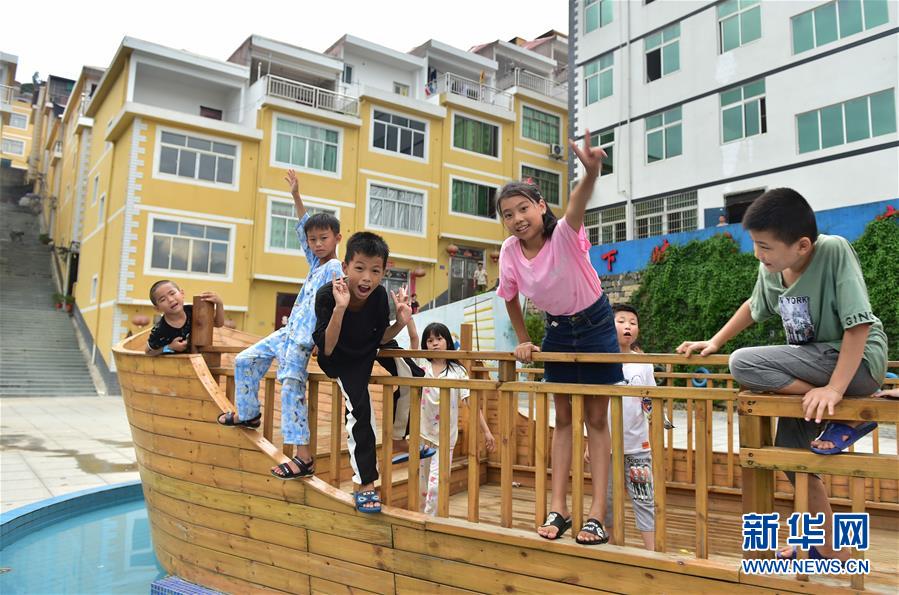 8月22日,福安市下岐村小朋友在下岐漁民廣場(chǎng)前玩耍。新華社記者林善傳攝