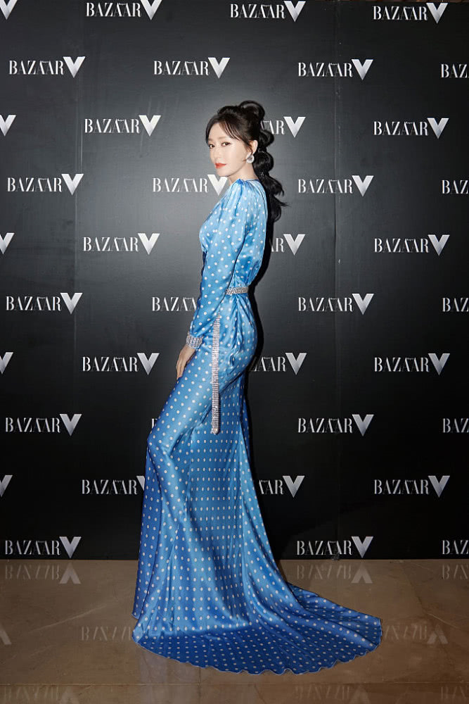 秦嵐穿魚尾裙大秀S曲線 扎燈籠馬尾俏皮露美背