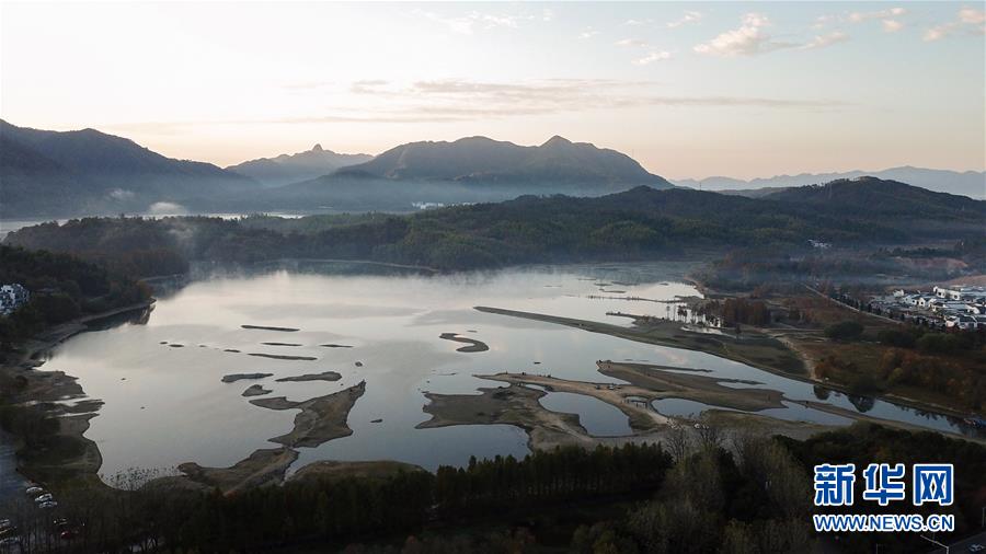 這是11月15日無(wú)人機(jī)拍攝的安徽黟縣奇墅湖晨景。新華社記者張笑宇攝