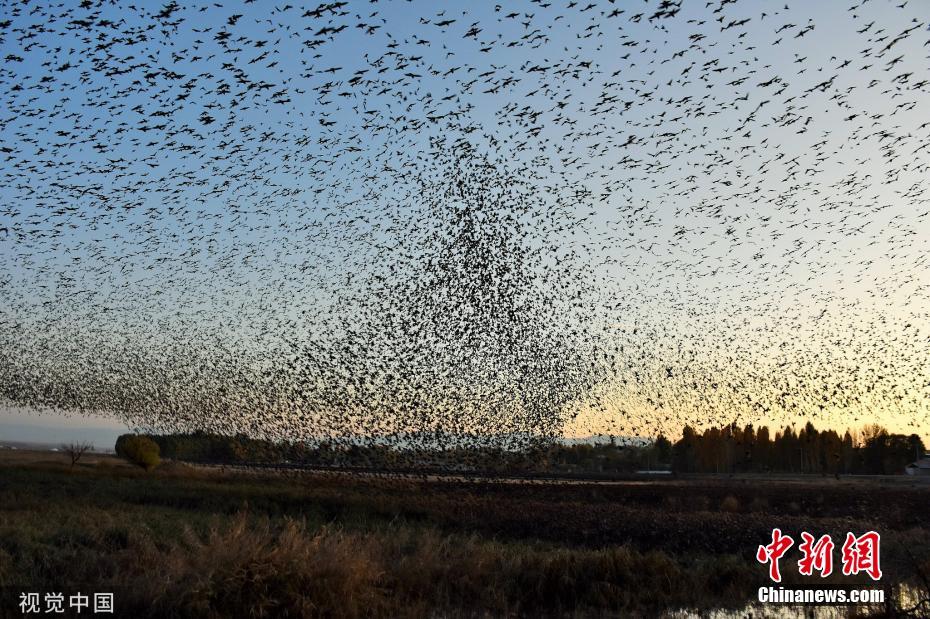 近日,土耳其穆什,椋鳥群遷徙途中,黑壓壓一片遮擋天空。圖片來源:視覺中國(guó)