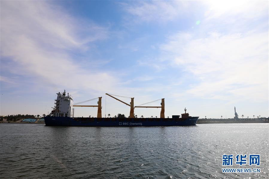 11月17日,在埃及伊斯梅利亞,一艘貨輪從蘇伊士運(yùn)河上駛過。埃及蘇伊士運(yùn)河管理局17日在埃及東北部伊斯梅利亞省舉行儀式,慶祝蘇伊士運(yùn)河通航150周年。新華社記者李碧念攝