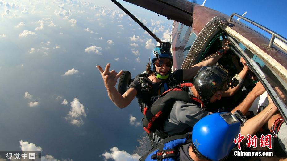 11月20日訊,以色列一群跳傘者在從一萬三千英尺(約3962米)的高空進行跳傘,墜落時盡情嬉戲、舞動和翻跟斗。圖片來源:視覺中國