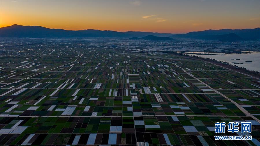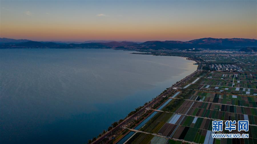 這是云南省玉溪市通海縣的田園風(fēng)光(11月23日無人機(jī)拍攝)。初冬時(shí)節(jié),云南省玉溪市通??h風(fēng)景秀麗,山巒、湖水與農(nóng)田組成了一幅美麗的田園詩畫卷。新華社記者胡超攝