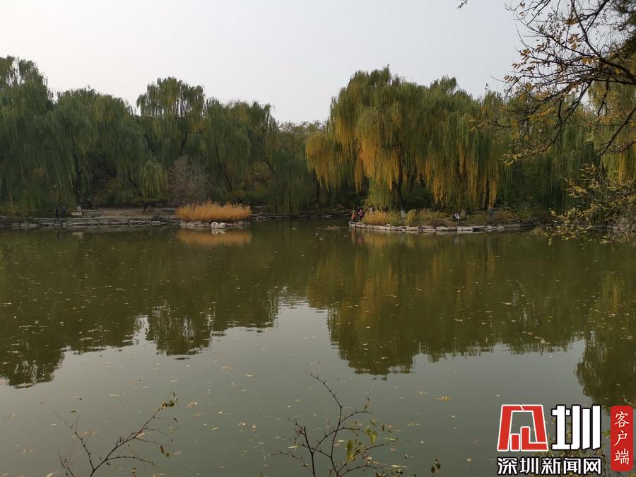 未名湖畔紅葉多姿、美麗寧靜。