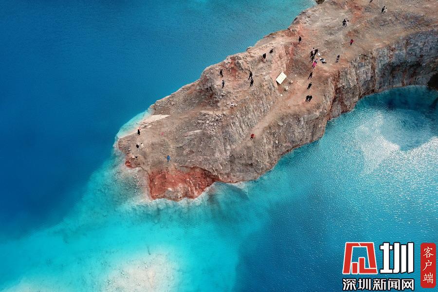 藍(lán)色的湖體和礦坑的巖石相襯下酷似“馬爾代夫”旅游景點,成為“網(wǎng)紅”,一時間吸引了眾多游客前來觀光打卡。