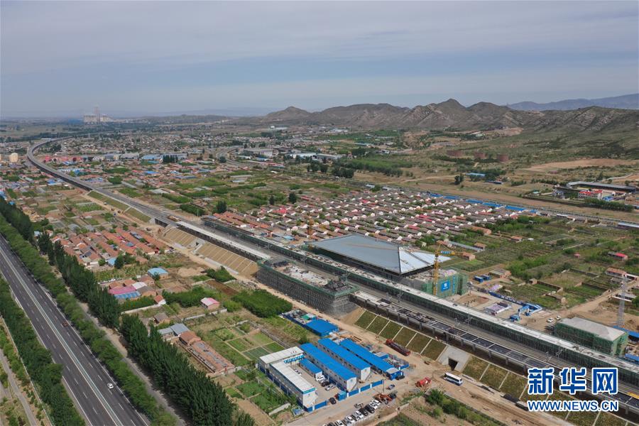 5月28日無(wú)人機(jī)拍攝的建設(shè)中的京張高鐵懷來(lái)站。新華社記者邢廣利攝