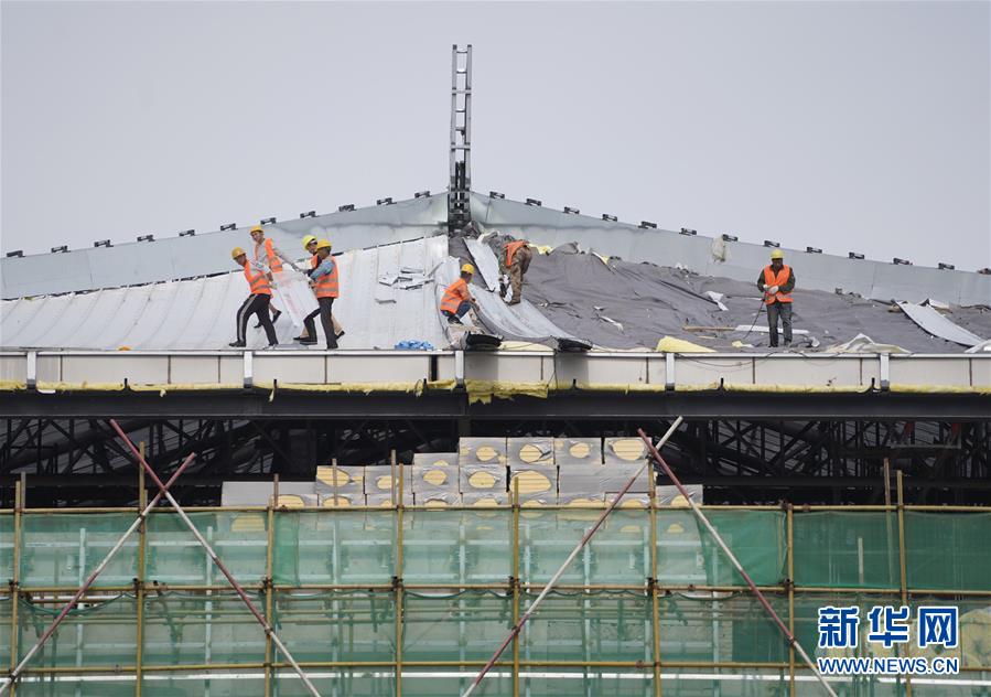 5月29日,工人在京張高鐵下花園北站施工。新華社記者邢廣利攝