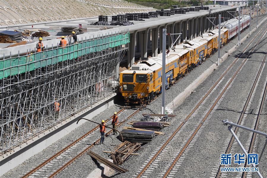 5月29日,工人在京張高鐵下花園北站施工。新華社記者邢廣利攝