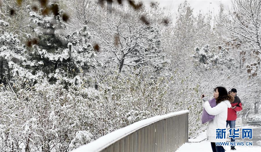 11月30日,行人在觀賞雪景。11月29日起,北京市出現(xiàn)大范圍降雪,積雪覆蓋了北京城區(qū),為人們帶來(lái)了驚喜。 新華社記者 李欣 攝