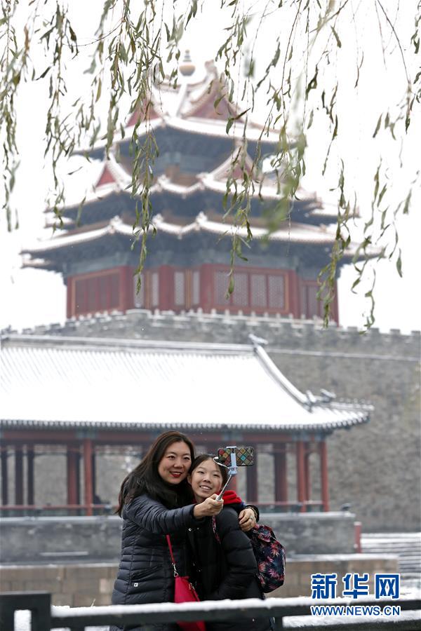 11月30日,人們?cè)谘┖蟮墓蕦m角樓附近拍照。 新華社記者 沈伯韓 攝