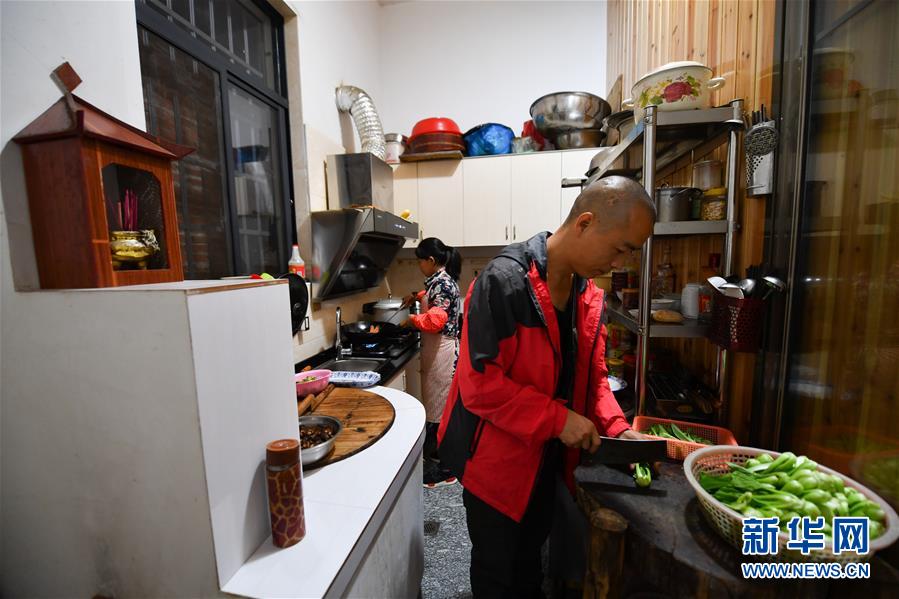 11月6日,鄉(xiāng)村攝影師曹加祥在自家的民宿內(nèi)為游客準(zhǔn)備晚餐。新華社記者胡晨歡攝