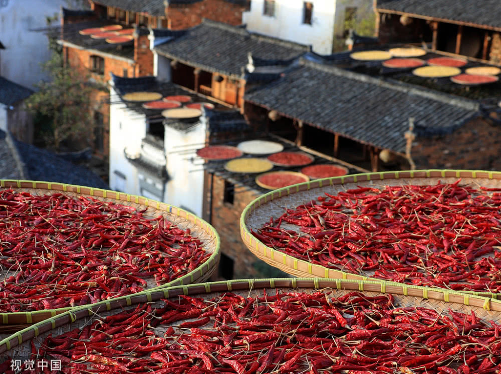 進入深秋,江西省婺源縣篁嶺古村“曬秋人家”秋色繽紛。
