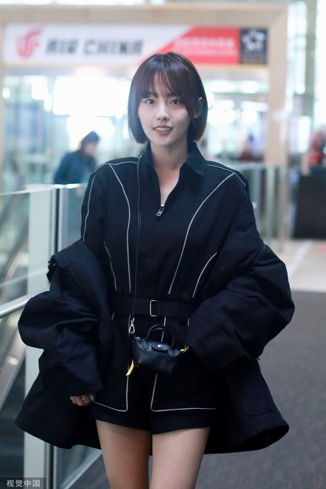 當(dāng)天張嘉倪身穿一件黑色的連體短褲,下身則搭配的一雙黑色的皮鞋,非常時(shí)尚。