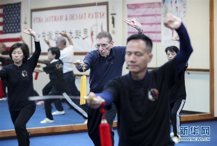 陳思坦在位于美國(guó)紐約長(zhǎng)島的思坦太極武術(shù)中心帶學(xué)員練習(xí)太極劍(11月20日攝)。11月的紐約已進(jìn)入初冬,位于美國(guó)紐約長(zhǎng)島的思坦太極武術(shù)中心依然一片紅火景象,學(xué)員們從5歲的孩童到80多歲的老人,操練著太極拳、太極劍、長(zhǎng)拳等武術(shù)招式。這里的主人陳思坦、林旭夫婦,也從早忙到晚,精心指導(dǎo)每一位學(xué)員的一招一式。6歲習(xí)武,22歲成為中國(guó)全國(guó)冠軍,26歲獲得首個(gè)世界冠軍……直到30歲退役,陳思坦在運(yùn)動(dòng)員生涯中曾獲得過(guò)32次國(guó)內(nèi)外各類武術(shù)大賽冠軍。36歲那年,懷著以太極拳和中國(guó)武術(shù)為媒介向世界推廣中國(guó)文化的夢(mèng)想,陳思坦到美國(guó)紐約尋找新的舞臺(tái)。經(jīng)過(guò)十多年的艱苦打拼,陳思坦夫婦目前在紐約長(zhǎng)島、法拉盛和曼哈頓都開(kāi)設(shè)了長(zhǎng)期的課程,思坦太極注冊(cè)在編的各個(gè)年齡段的學(xué)員近千人,有些“高徒”現(xiàn)在自己也開(kāi)班授課,將太極推向更多地方。陳思坦夫婦現(xiàn)在思考更多的是如何將太極和武術(shù)推廣給更多的美國(guó)人,并讓他們理解其中蘊(yùn)含的平衡、和諧的中國(guó)文化理念。他們創(chuàng)辦了紐約太極健身氣功活動(dòng)日,在各類學(xué)校和社區(qū)開(kāi)設(shè)太極或者武術(shù)課程,并利用美國(guó)的亞太裔文化月和多元文化節(jié)舉行武術(shù)和太極表演和體驗(yàn)課程,讓更多美國(guó)人親眼看到、親身體會(huì)中國(guó)武術(shù)的魅力。從2011年起,他們還參與創(chuàng)辦了紐約太極大賽,如今已舉行九屆,吸引了美國(guó)、加拿大和中國(guó)國(guó)內(nèi)的隊(duì)伍參賽,影響力逐漸擴(kuò)大。新華社記者王迎攝