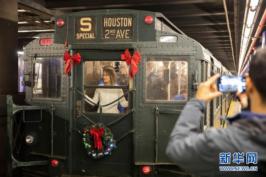 12月8日,在美國(guó)紐約,一名女士在“懷舊專列”里拍照。每年感恩節(jié)到新年之間的星期日,紐約地鐵都會(huì)用1932年至1977年間使用的老式列車在運(yùn)營(yíng)的線路上開行特別的“懷舊專列”,人們穿戴舊時(shí)服飾專程前來搭乘,體驗(yàn)時(shí)光回溯的奇妙旅程。新華社記者王迎攝