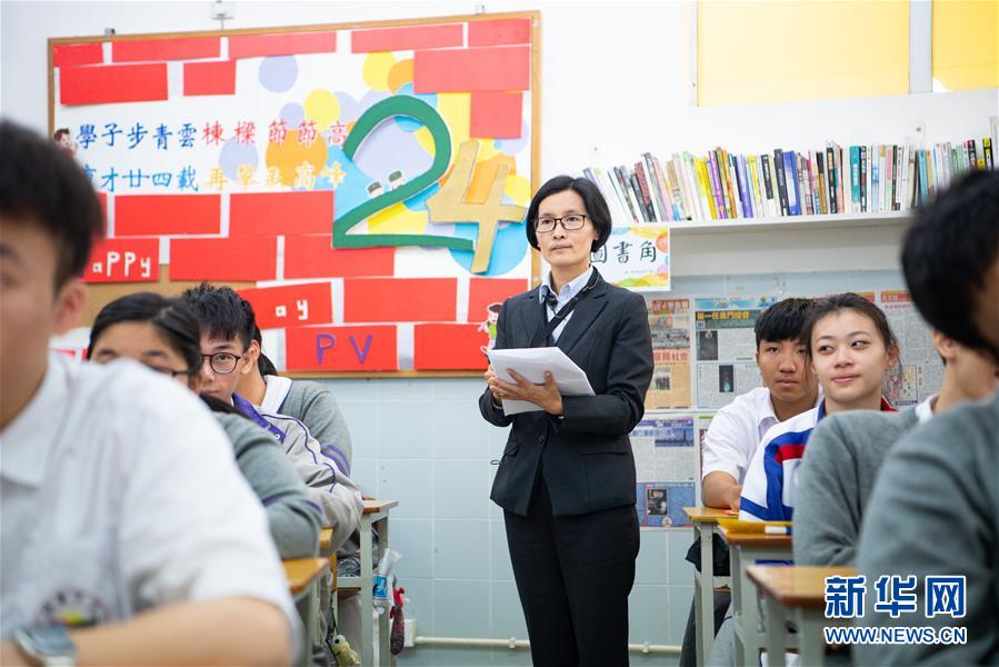 11月26日,澳門培華中學(xué)教師袁金淑在教室內(nèi),她已經(jīng)工作了20年,主要負(fù)責(zé)數(shù)學(xué)及公民教育。 新華社記者 張金加 攝