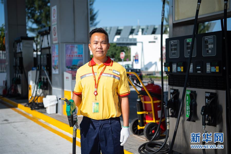 11月25日,澳門南光石油化工有限公司加油員陳健忠在加油站內(nèi),他已經(jīng)工作了3年。 新華社記者 張金加 攝