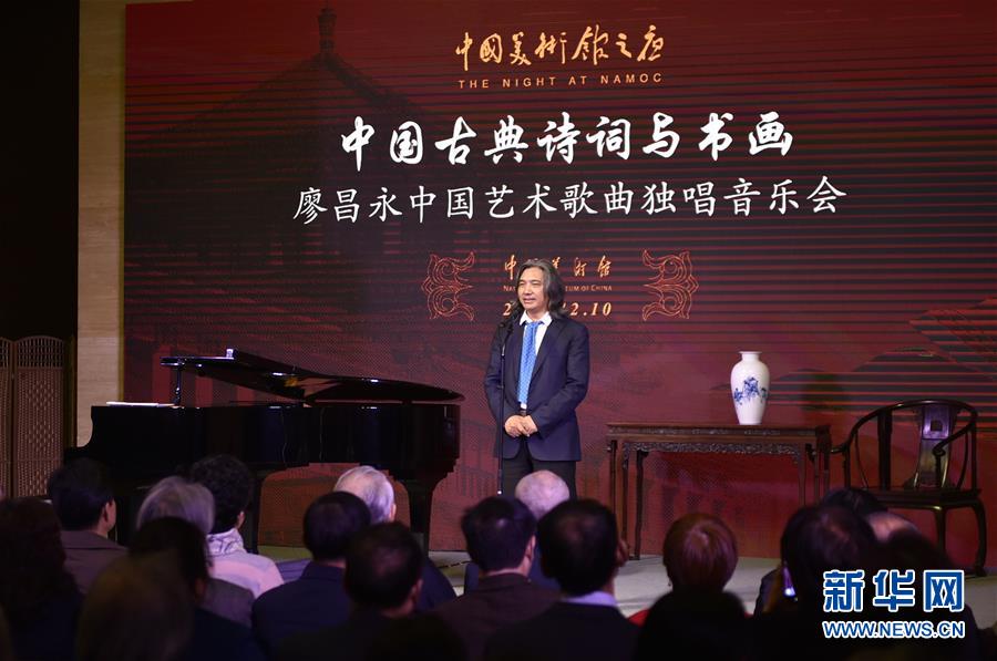 12月10日晚,中國(guó)美術(shù)館館長(zhǎng)吳為山在音樂會(huì)現(xiàn)場(chǎng)致辭。 當(dāng)晚,中國(guó)古典詩(shī)詞與書畫——廖昌永中國(guó)藝術(shù)歌曲獨(dú)唱音樂會(huì)在北京中國(guó)美術(shù)館舉行。 新華社記者 魯鵬 攝