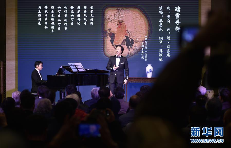 12月10日晚,廖昌永在音樂會上演唱《踏雪尋梅》。 當(dāng)晚,中國古典詩詞與書畫——廖昌永中國藝術(shù)歌曲獨唱音樂會在北京中國美術(shù)館舉行。 新華社記者 魯鵬 攝