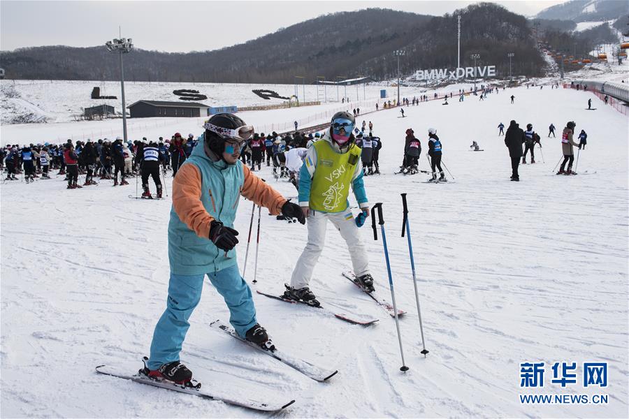 12月13日,滑雪初學者在吉林市萬科松花湖度假區(qū)練習滑雪技巧。新華社記者 張豪夫 攝