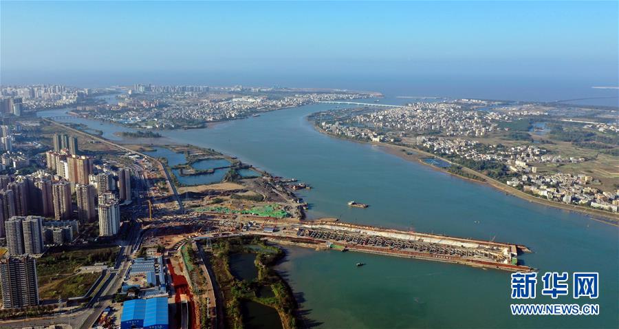 正在施工的??谖拿鳀|越江通道項(xiàng)目(12月14日無(wú)人機(jī)拍攝)。  新華社記者 郭程 攝
