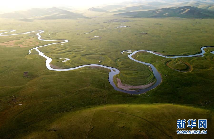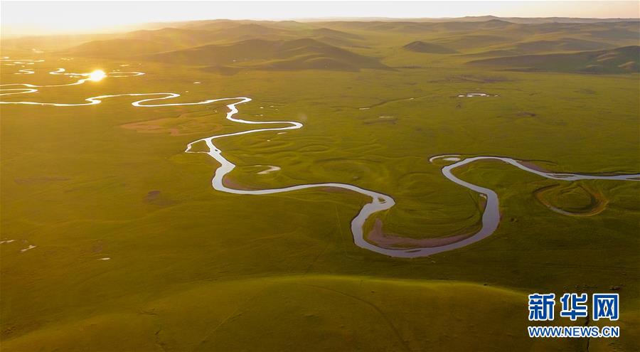 8月26日無人機拍攝的伊敏河。伊敏河流經(jīng)呼倫貝爾草原。新華社記者彭源攝