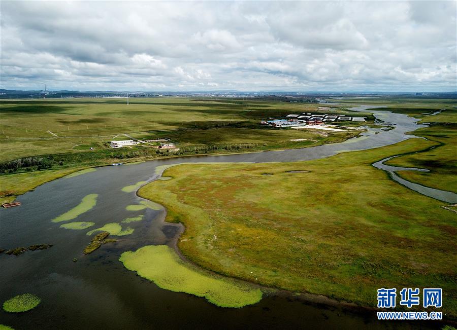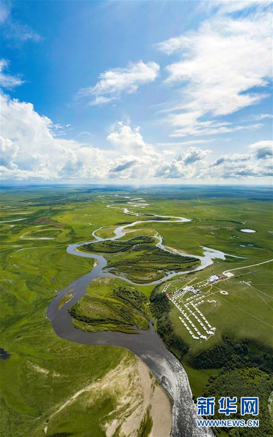 8月29日無人機拍攝的內(nèi)蒙古呼倫貝爾市額爾古納濕地景區(qū)。新華社記者劉磊攝