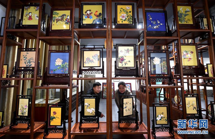 12月14日,在河北定州緙絲傳習(xí)基地,工作人員(右)在給游客介紹緙絲作品。定州緙絲是一種以蠶絲為原料,采用“通經(jīng)斷緯”技法織成的雙面平紋織物,工藝繁雜,經(jīng)得起摸、擦、揉、搓、洗,有著“千年不壞的藝術(shù)織品”之譽,2013年被列入河北省第五批非物質(zhì)文化遺產(chǎn)名錄。近年來,河北定州積極推介緙絲,促進緙絲產(chǎn)業(yè)發(fā)展。 新華社記者 王曉 攝