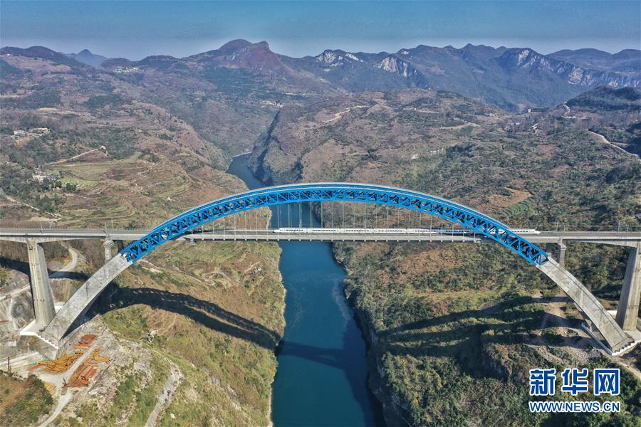 12月16日,一列動(dòng)車組列車從成貴高鐵西溪河大橋上駛過(guò)。新華社記者楊文斌攝