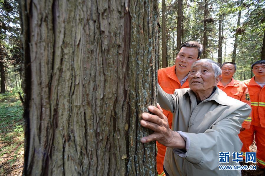 4月27日,在貴州省畢節(jié)市赫章縣平山國(guó)有林場(chǎng),李代關(guān)老人(前)在查看當(dāng)年和同事種的杉樹。今年88歲的李代關(guān)是貴州省畢節(jié)市赫章縣平山國(guó)有林場(chǎng)的一名退休職工,他1958年參加工作,成為一名林業(yè)工人,把畢生奉獻(xiàn)給了林業(yè)事業(yè)。在李代關(guān)的感召下,他的兒子和孫子都成為了護(hù)林員。經(jīng)過幾代林業(yè)工人的努力,截至2018年底,赫章縣平山鎮(zhèn)的森林覆蓋率已達(dá)66.7%。新華社記者楊楹攝