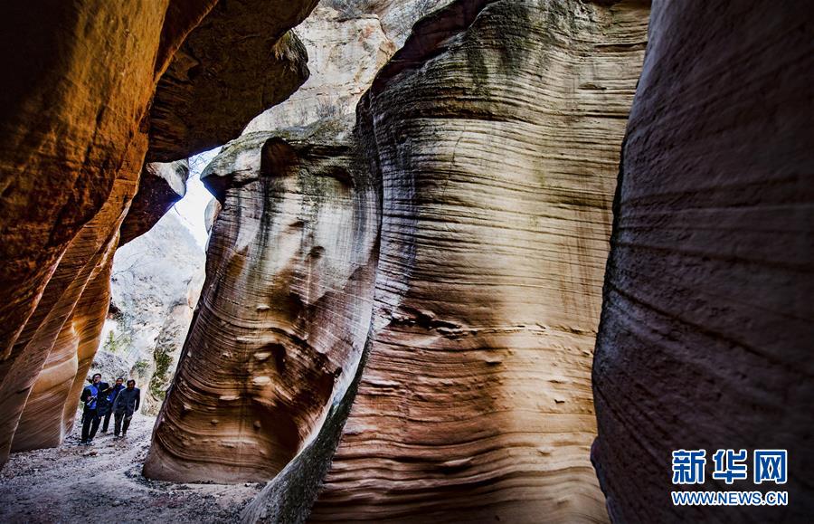 12月17日,游人在志丹縣雙河鎮(zhèn)毛項(xiàng)峽谷內(nèi)游覽。毛項(xiàng)峽谷位于陜西省延安市志丹縣雙河鎮(zhèn)毛項(xiàng)村,峽谷全長(zhǎng)12公里,分為9段,曲折綿延,谷內(nèi)石壁凹凸不平,其中最窄處只能容一人側(cè)身通過,堪稱黃土高原上的自然奇觀。新華社記者陶明攝