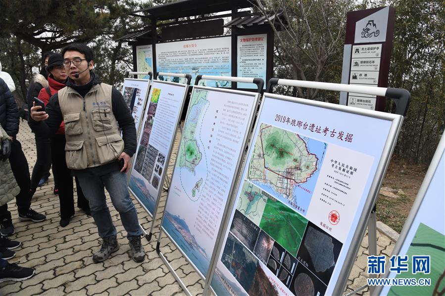 考古隊(duì)員彭峪在介紹瑯琊臺遺址考古發(fā)掘的進(jìn)展(12月21日攝)。新華社記者李紫恒攝