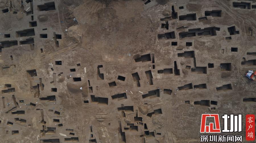 西安宜家工地挖出古墓空中俯瞰數(shù)百墓坑密密麻麻