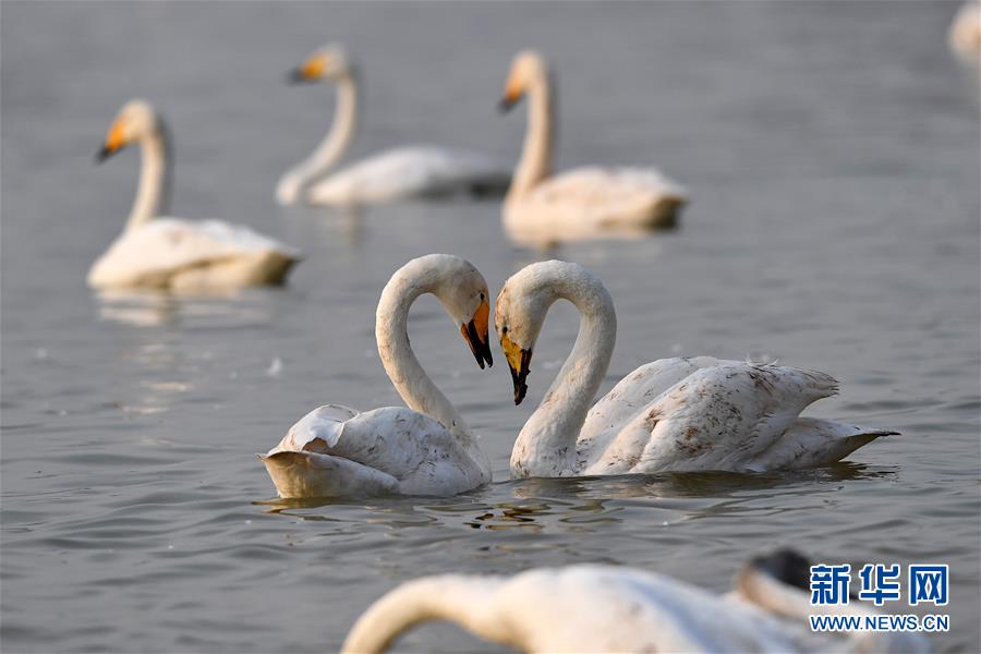 12月13日,白天鵝在山西平陸黃河濕地棲息。 連日來,眾多白天鵝飛臨山西平陸黃河濕地越冬。 占地6000多公頃的山西平陸黃河濕地位于山西、河南兩省交界處,這里氣候溫和,采食豐富,非常適宜白天鵝越冬。每年秋末冬初,白天鵝都會從遙遠(yuǎn)的西伯利亞來到這里棲息越冬。 新華社記者 詹彥 攝