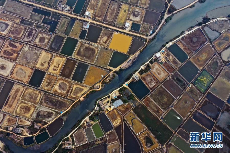 12月21日無人機拍攝的廣西合浦縣黨江鎮(zhèn)更螺圍出??诘奈r塘。冬日,廣西廉州灣海域風(fēng)光別致。新華社記者張愛林攝