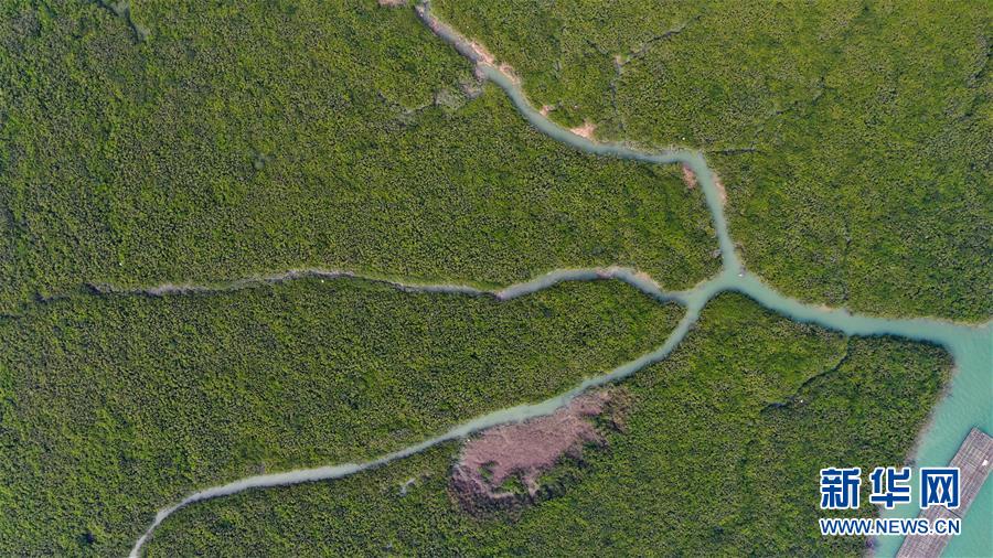 12月21日無人機拍攝的廣西合浦縣黨江鎮(zhèn)更螺圍出海口一景。冬日,廣西廉州灣海域風(fēng)光別致。新華社記者張愛林攝