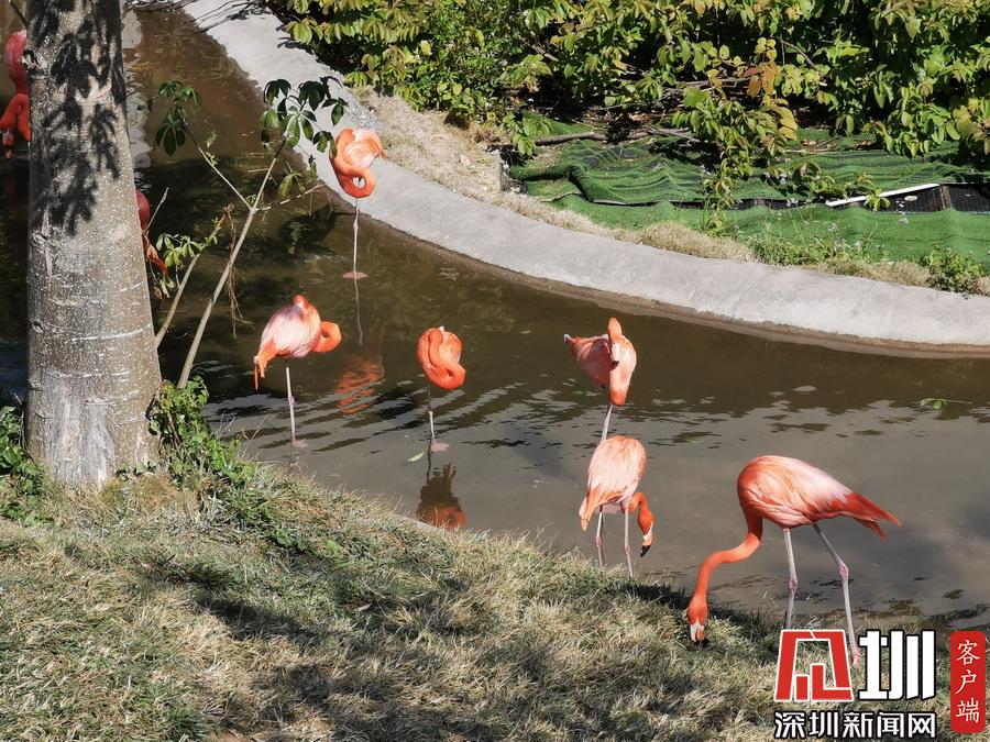 探訪深圳國(guó)家基因庫(kù) 火烈鳥(niǎo)湖中悠閑覓食