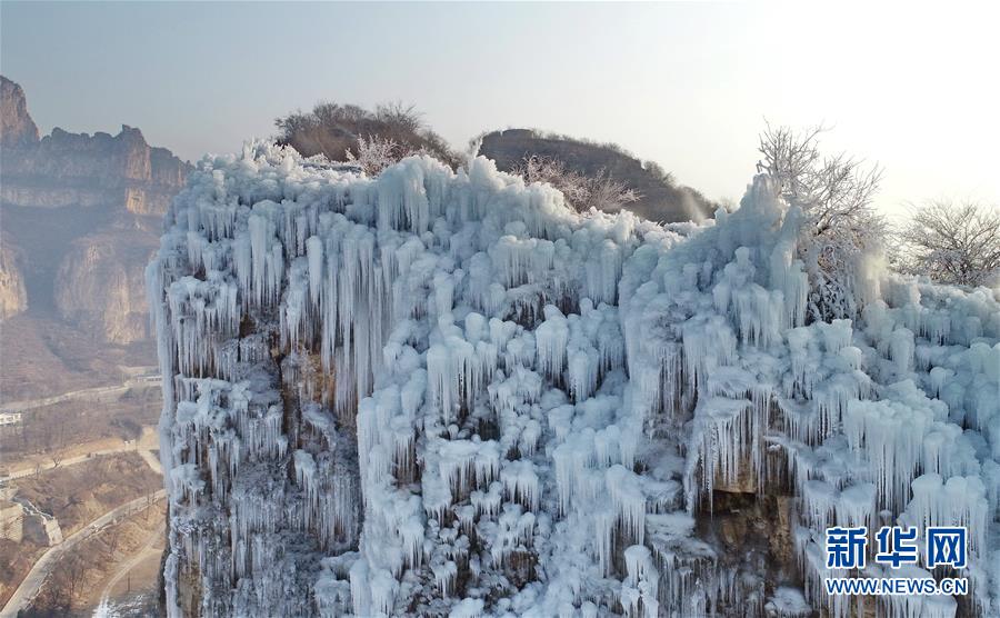 這是平山縣沕沕水景區(qū)的冰瀑(12月25日無(wú)人機(jī)攝)。新華社記者楊世堯攝