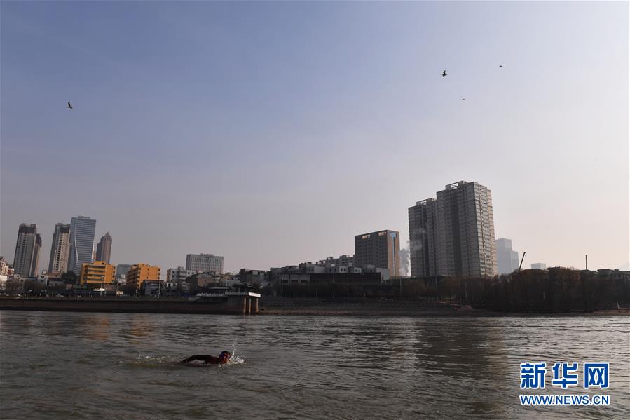 12月18日,冬泳愛好者張敏捷在黃河冬泳。新華社記者馬寧攝